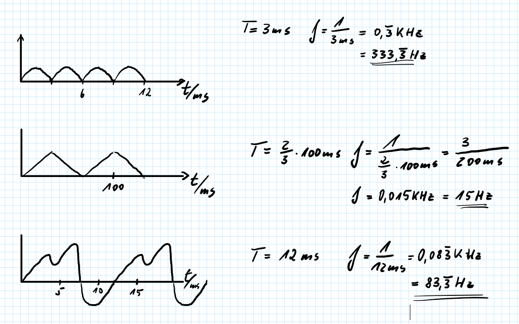 Berechne für die nachfolgenden Signale Periodendauer und Frequenz!