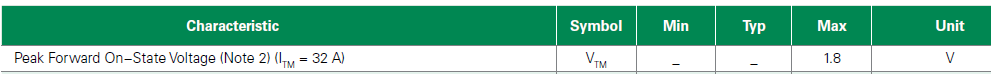 Die Durchlassspannung liegt bei 32A bei 1,8V. Sie steigt mit dem Durchlaßstrom an. Das Produkt aus Durchlassspannung und Durchlassstrom ist die Durchlassverlustleistung.