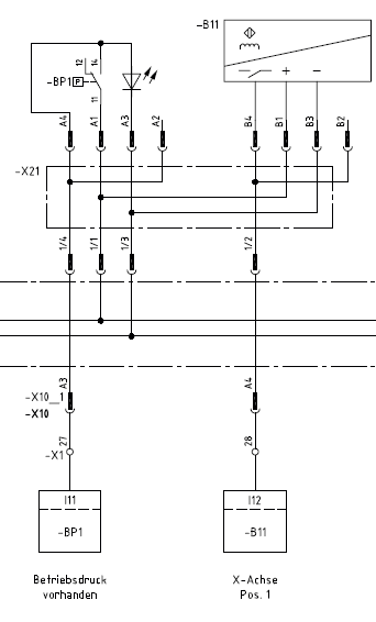 Hier zwei Beispiele, wie Sensoren eingezeichnet werden können. Beim kapazitiven Näherungssensor wird das Symbol der Induktivität durch das Kondensatorsymbol ersetzt.